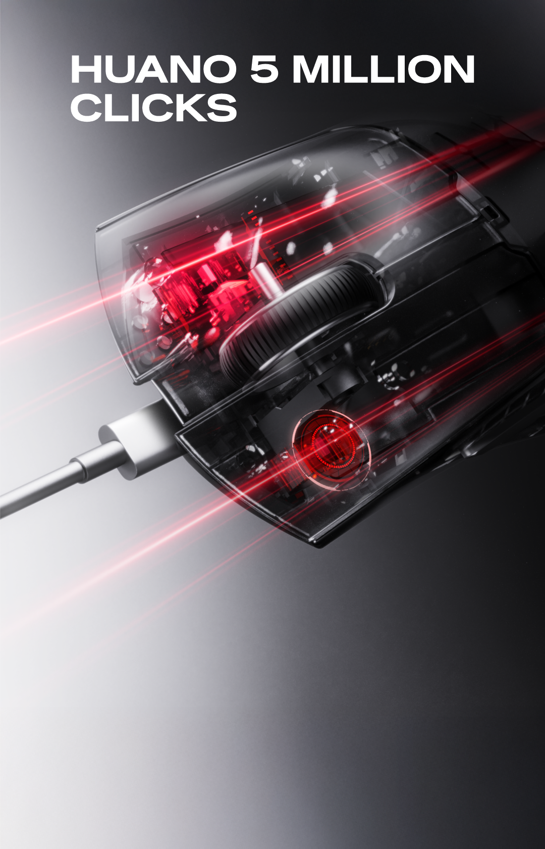 Built to withstand the rigors of gaming, our optical switches last up to 5 million clicks, ensuring rapid response times and extended durability. The refined actuation mechanism provides a faster, more responsive, more consistent switch return with a light, crisp press without stickiness.